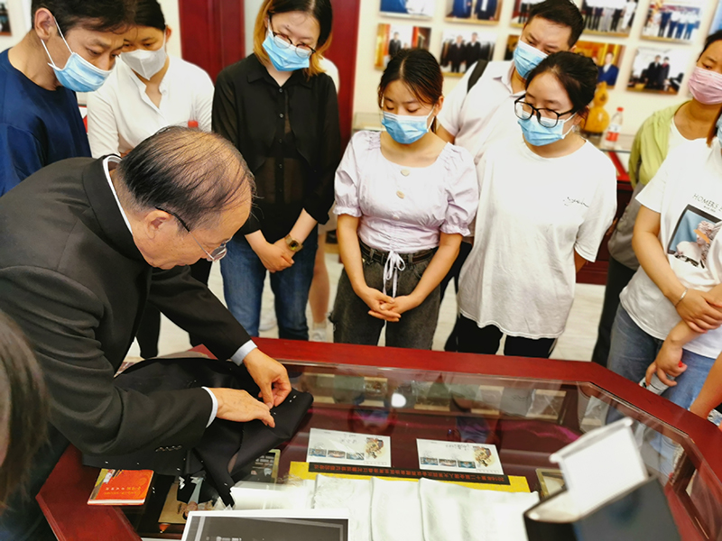 国家礼服——中山装的历史文化及演变过程是怎样的?老一辈国家领导人有哪些中山装情怀?被英国《独立报》评为影响世界的十大套装之首的“毛式中山装”是怎样诞生的?红都中山装制作技艺的与众不同之处在哪里?红都中山装制作技艺市级非遗传承人蔡金昌大师为参观者一一进行了详细解惑,并为参观者现场展示了中山装的量体技法。随后邓书记又讲述了中山装在中国外交中体现的大国风范。