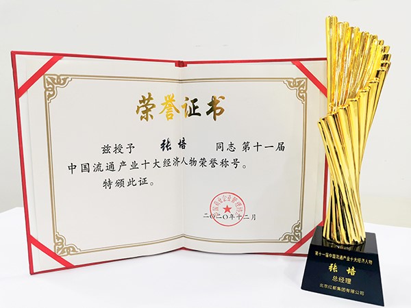 2020年12月24日,中国商业企业管理协会以“弘扬优秀企业家精神,勇于创新担当奉献”为主题,隆重举办了全国商业企业家活动日。会上对荣获“第十一届中国流通产业十大经济人物”称号的优秀企业家给予表彰。北京红都集团有限公司原总经理张培在100余位企业家中脱颖而出获此殊荣。原商业部副部长何济海为优秀企业家颁发了证书和奖杯。