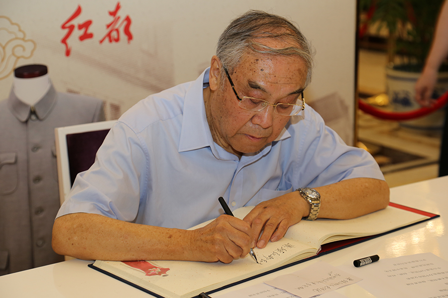 许多位大使来红都参观前都特意提前准备了给红都的赠言。原外交部礼宾司代司长,驻斯洛文尼亚首任大使鲁培新在签名赠言时,从包中拿出一张写了笔记的纸,一边对大家说:“我是做了准备来的,提前想好了。”一边在赠言簿上有力地写下了“赓续红都红色传统,为中国外交做出更多贡献”。最后他把纸条小心的收起来,说:“这很有意义,回去之后我要放在自己的日记本里。”汤铭新大使在留言前拿出了一个小本子,说自己是做了“功课”来的,翻到洋洋洒洒写了一大篇文字的页面,在赠言簿上写下对红都的感想“红都文化,服装精华;礼仪架桥,纵览天下;服务外交,功业挥洒;时代发展,恢宏灯塔。